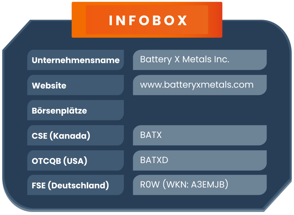 Jetzt steht mit Battery X Metals (WKN: A40X9W) erneut ein Unternehmen im Fokus, das genau diese Voraussetzungen erfüllt.
